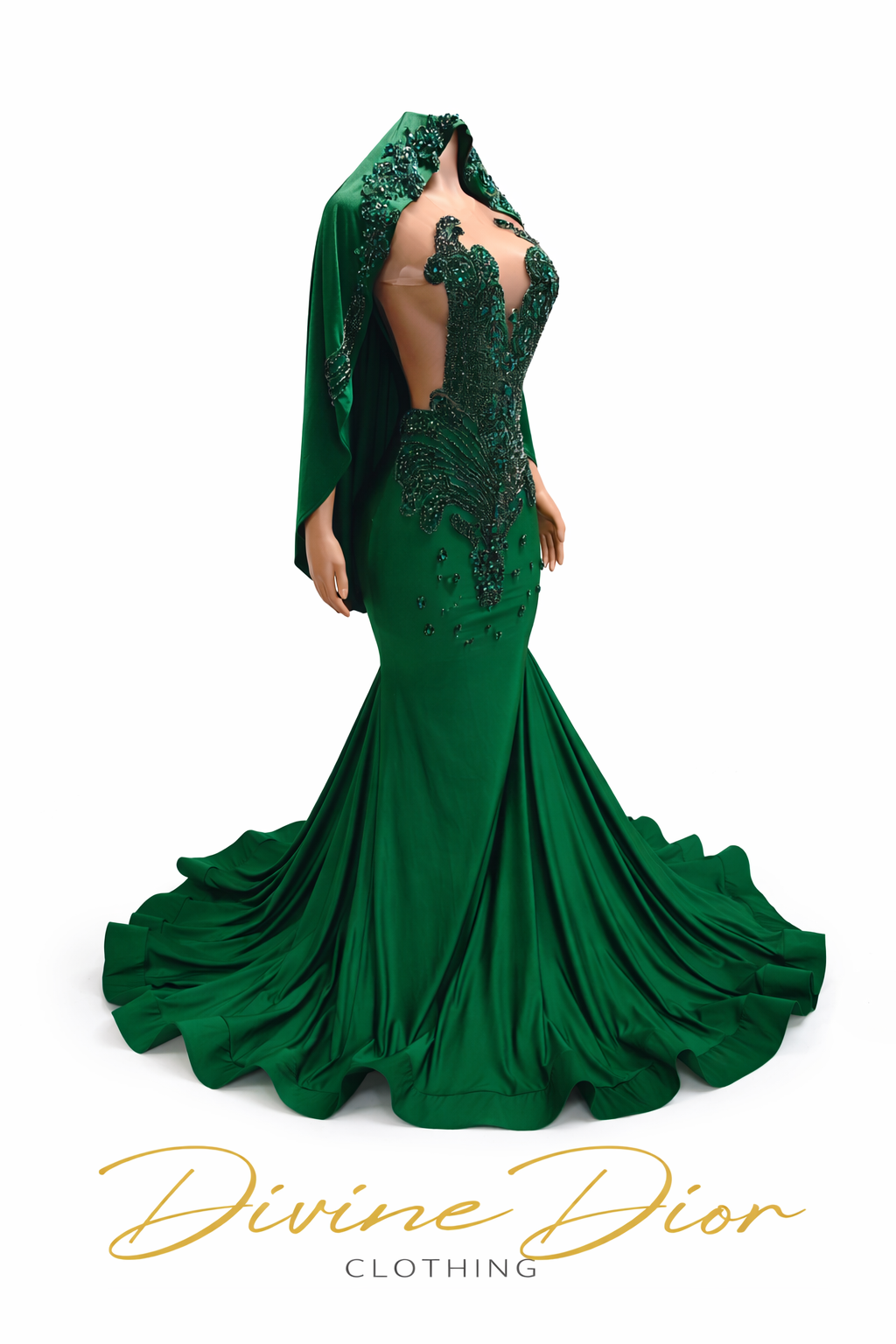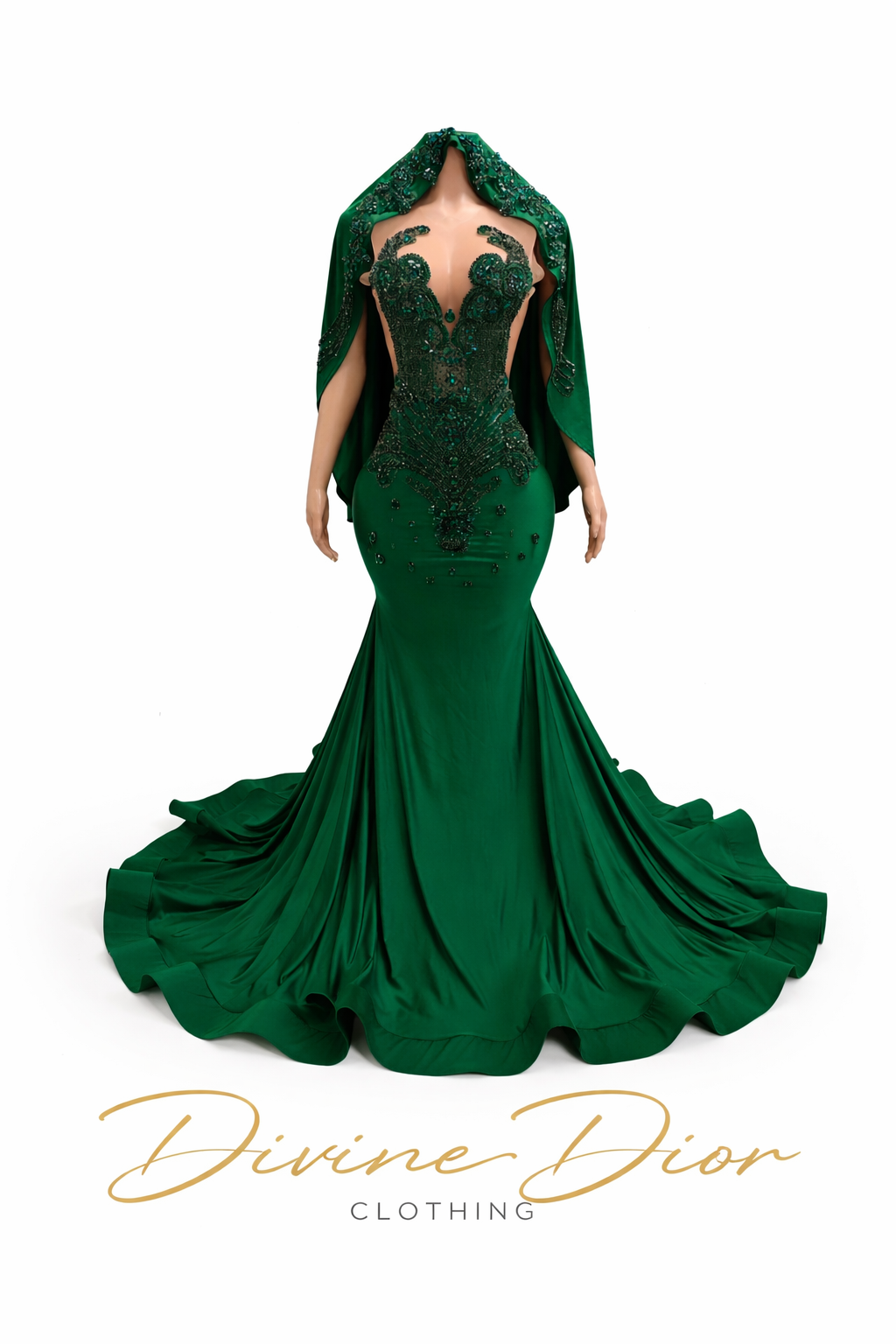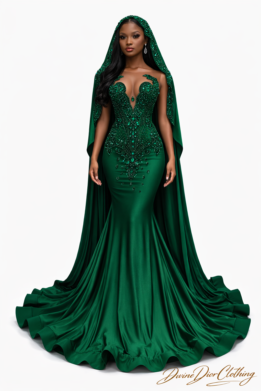 The Royal Ascension Dress is a statement of elegance, artistry, and regal sophistication. This figure-contouring mermaid gown features an intricately embellished bodice with ornate detailing that flows seamlessly into the fitted silhouette. The illusion neckline creates a dramatic, couture-inspired look while maintaining a refined balance of structure and delicacy.