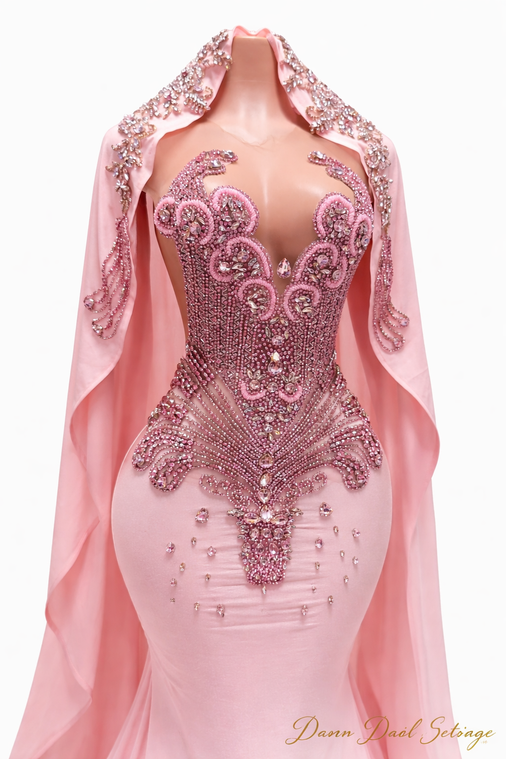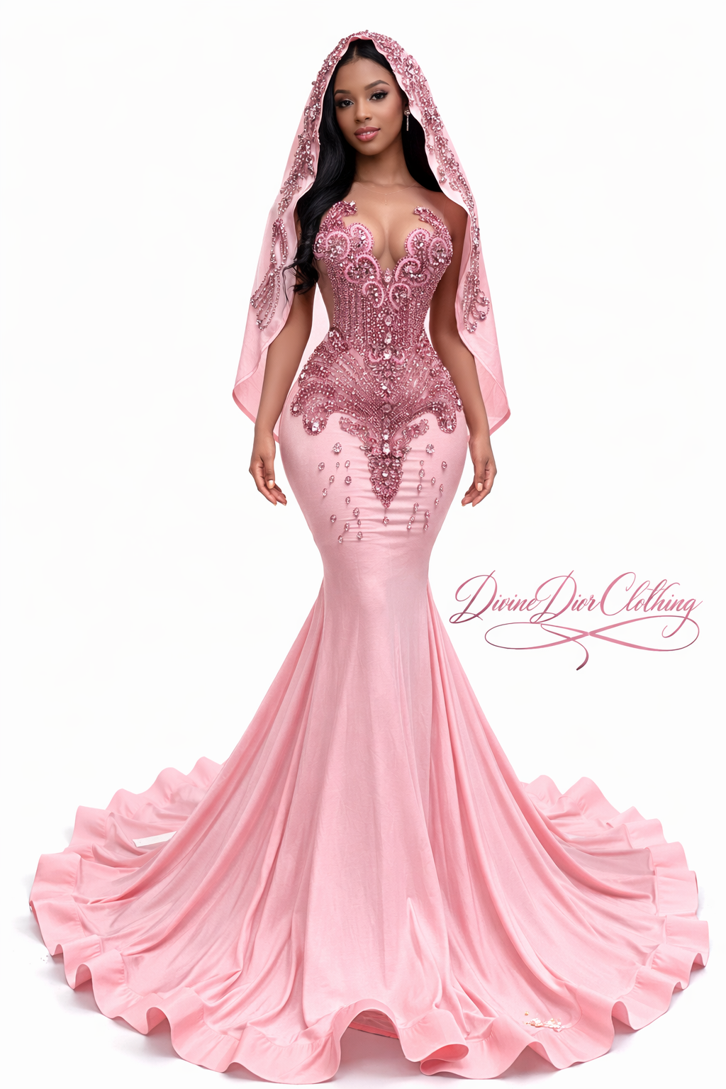 The Royal Ascension Dress is a statement of elegance, artistry, and regal sophistication. This figure-contouring mermaid gown features an intricately embellished bodice with ornate detailing that flows seamlessly into the fitted silhouette. The illusion neckline creates a dramatic, couture-inspired look while maintaining a refined balance of structure and delicacy.