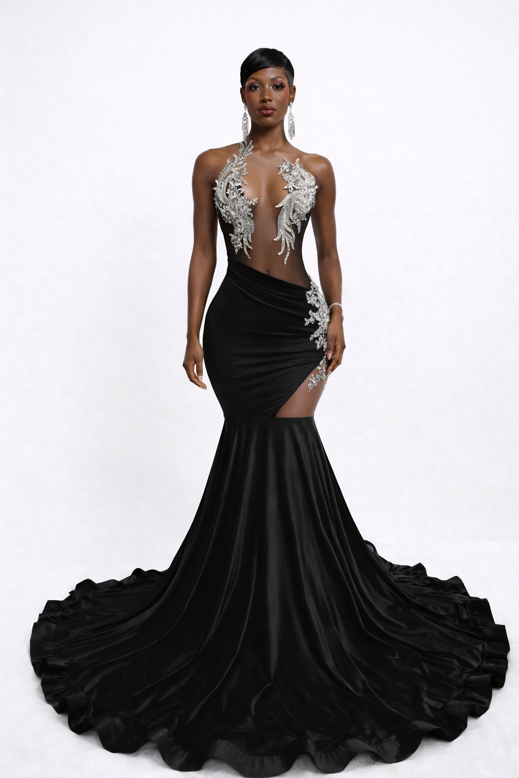 Every detail of The Goddess Cut embodies confidence and femininity — from its sculpted fit to its show-stopping train — making it the perfect choice for red carpet moments, prom night, formal events, or any occasion where unforgettable glamour is required.